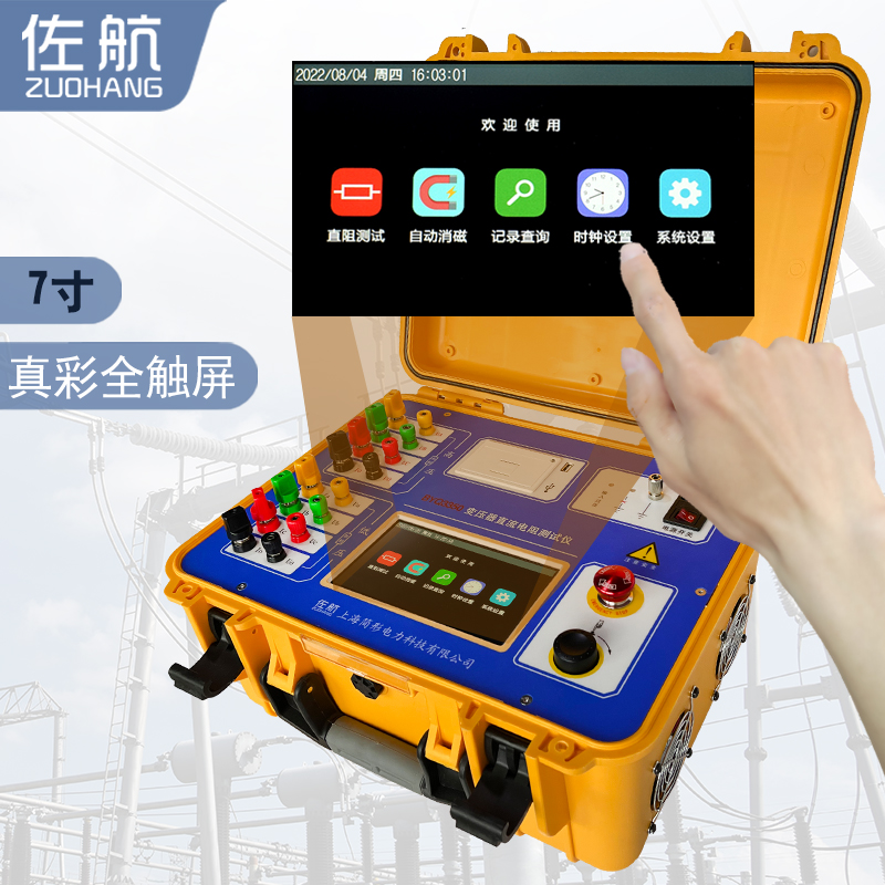 佐航BYQ3350变压器直流电阻测试仪,是集助磁法测试、三相测试( Yn ,Y 、△ )和 消磁功能于一体的新一代快速测试仪,是测量大型电力变压器直流电阻的理想设备。屏幕采用真彩色大屏幕高分辨率液晶显示屏,触控加飞梭旋钮操作,方便现场使用。具有中文菜单提示功能,操作简便直观,一次接线完成所有直阻测试项目,测试速度快,准确度高,量程宽。