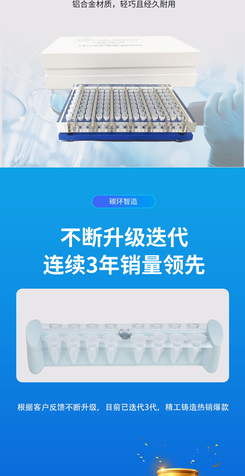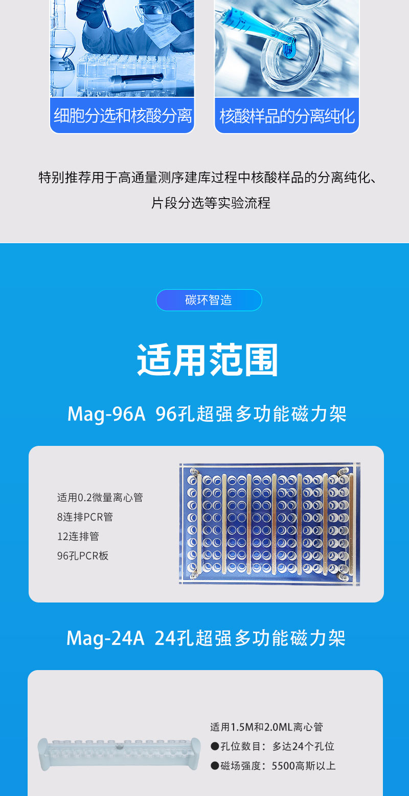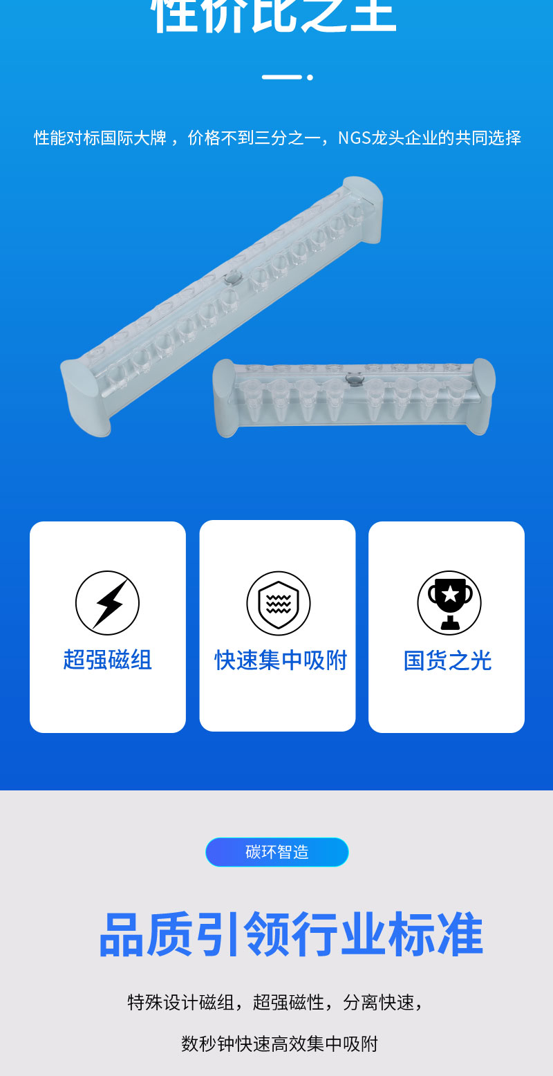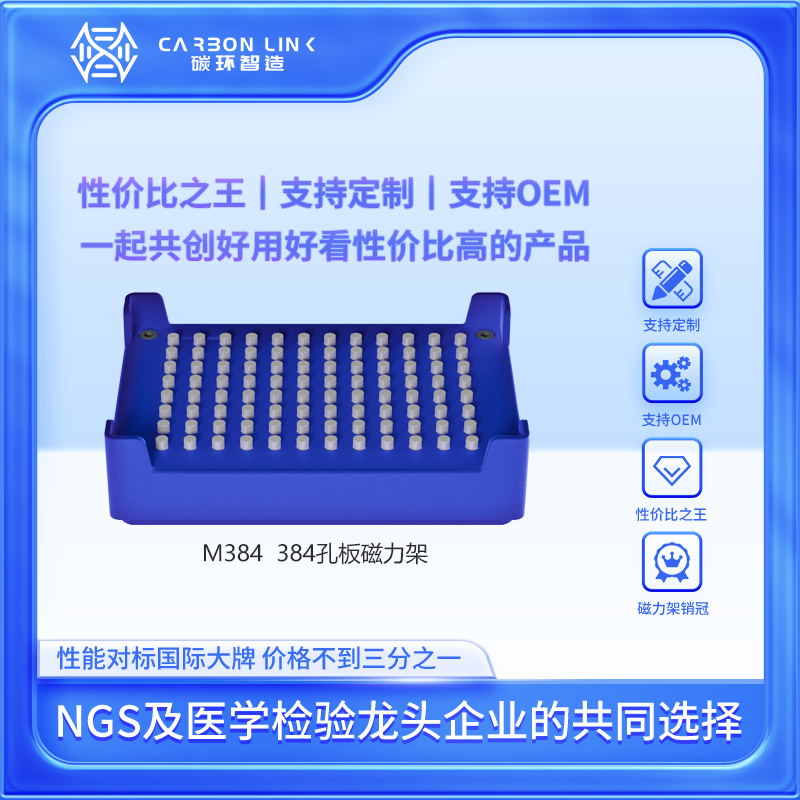 Alpaqua384 孔磁板进口平替碳环智造384孔板磁力架强磁磁力架,它凭借均匀强劲的磁场,实现磁珠的快速吸附与集中,数秒内即可完成分离,性能直追Alpaqua,而价格仅为进口品牌的三分之一。它不仅是中国NGS和医学检验龙头企业的共同选择,更是实验室降本增效的利器。